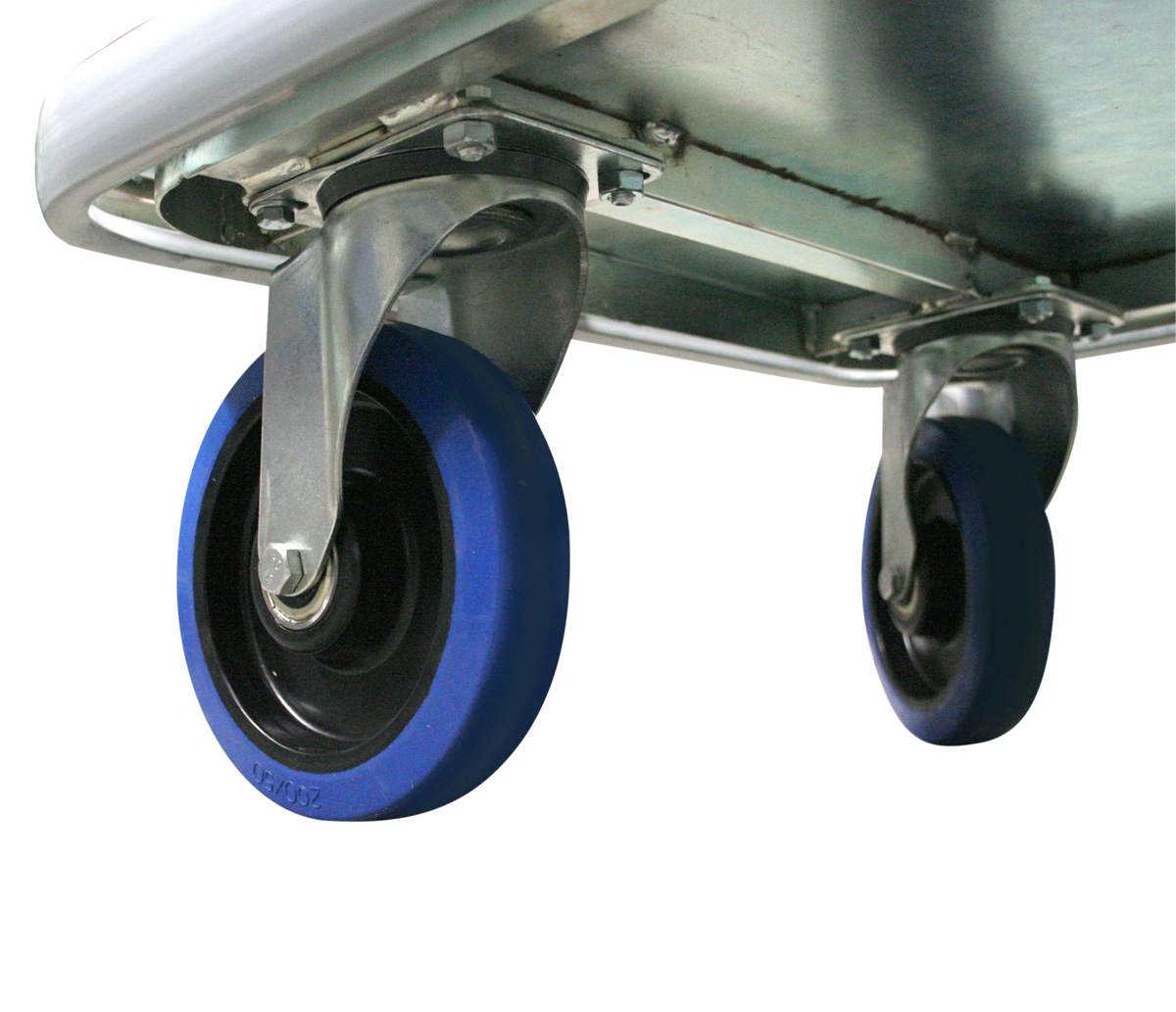 4 ruote in gomma blu antitaglio con gabbia a rulli Ø 200