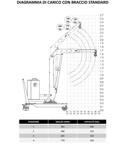 Ideale per tutte le industrie che scelgono di non effettuare investimenti in strutture fisse (gru a bandiera, carroponti) per garantirsi la possibilità di modifiche al layout senza vincoli. Idonea a trasportare con facilità pesi fino a 500 kg. Il sollevamento avviene azionando la pulsantiera. Il braccio è regolabile in 4 posizioni, con portata decrescente.
