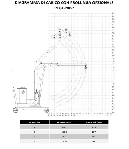 - Braccio estensibile in 4 posizioni con prolunga optionale